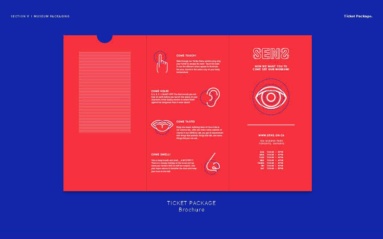 Our team’s brief was to re-brand a science museum. The museum board desires to revamp their current brand perception and has closed the museum for renovation with plans to host a Grand Reopening introducing the museum’s new image to the city of Toronto. For the re-branding package, our team has designed a logo, stationery package, signage, such as for the bathrooms and floor plans, as well as promotional material, including brochures, advertising, environmental design, exhibits, and affiliates, like the Gift Shop.